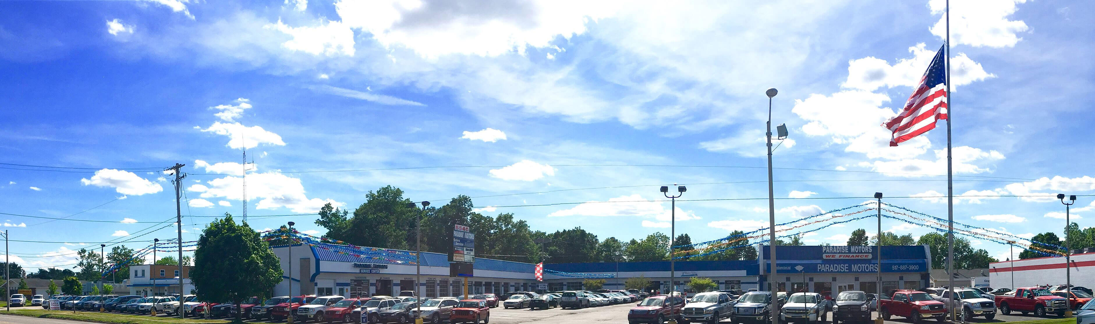 This is the 38th year Paradise Motors has served the Lansing, Michigan and surrounding area's. We are located at 5520 S.Pennsylvania Ave in Lansing Michigan 48911 and carry around 200 clean late model cars, trucks, vans and sport utilities. We also have a full service repair shop with certified mechanics that can handle anything from a simple oil change to a major engine or transmission overhaul.